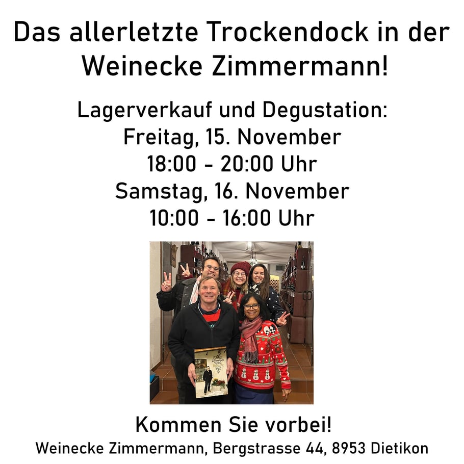 Der letzte Weihnachtsanlass in der Weinecke Zimmermann Samstag 21. Dezember 2024 von 10.00 bis ca. 16.00 Uhr